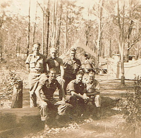 Bill Warren (who went fruit picking with Laurie earlier the same year). Front: Syd Cocking, Arch Gniel, Laurie Cheeseman and Bill Briscoe.