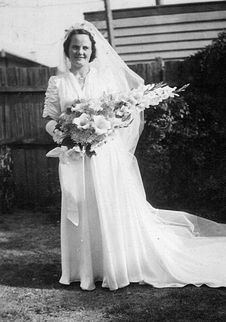 On 16 March 1940 Winnie and Fred were married in the Northcote Presbyterian Church which, a subsequent report in the Ouyen Mail tells us, had been 'beautified with a wealth of lovely pink gladioli and blue delphiniums'. It added that the wedding ceremony was conducted by the Reverend Archie Jones, 'who has been a friend of the bridegroom for some years'. Winnie was assisted by 'Miss Christina Cheeseman . . . and Miss Eileen Carvan, as bridesmaids, and little Shirley Haggis, cousin of the bride, as trainbearer'. Fred 'was attended by his brother, Mr Alfred Stafford, as best man, and another brother, Mr George Stafford, as groomsman'. After the ceremony, the report continued,